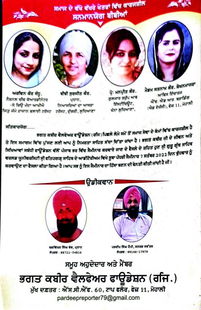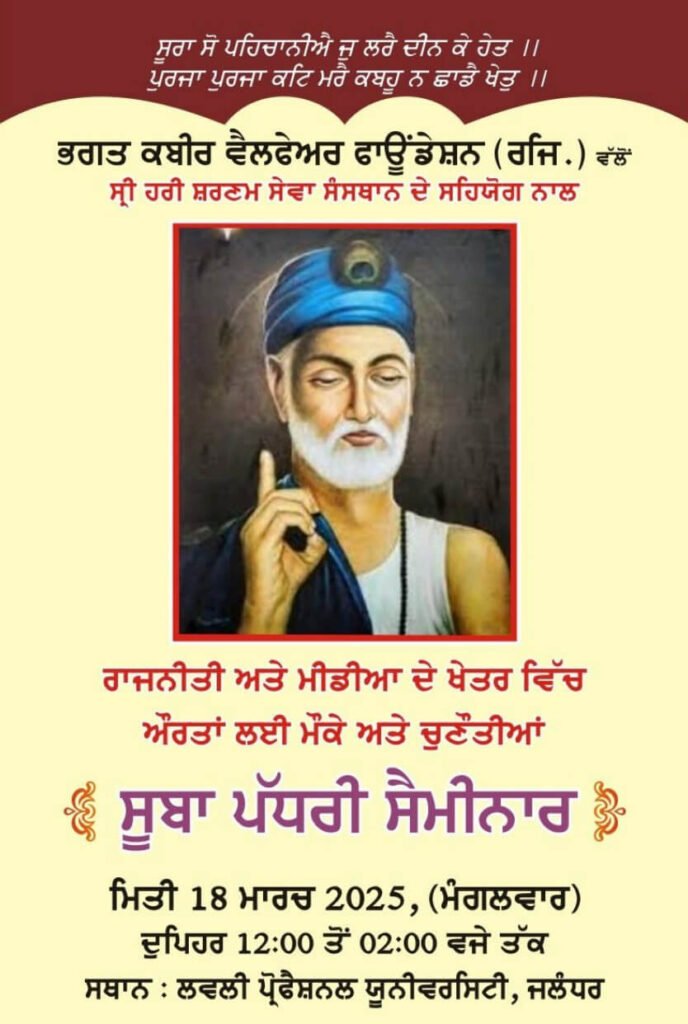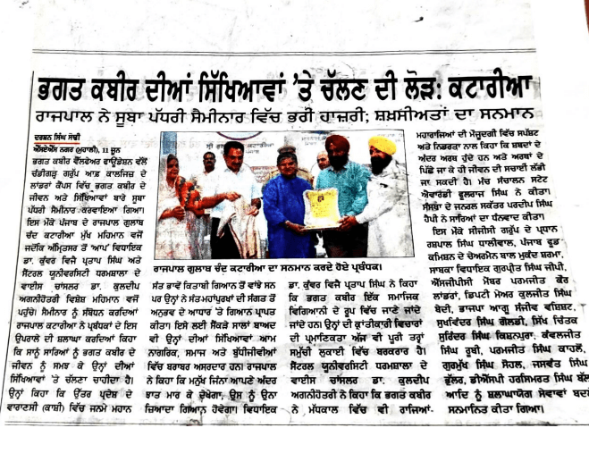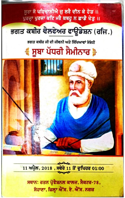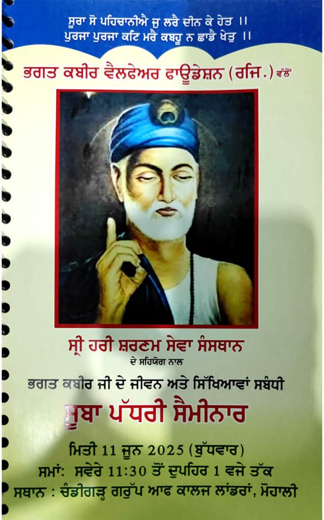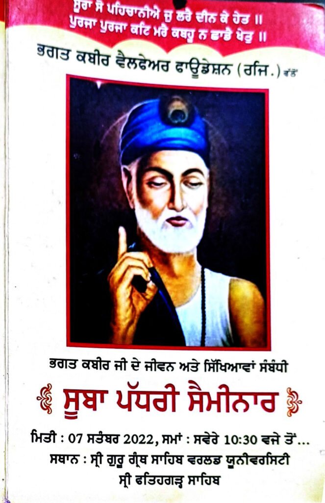 ਭਗਤ ਕਬੀਰ ਜੀ ਦੀ ਜੀਵਨੀ ਅਤੇ ਸਿੱਖਿਆਵਾਂ ਸੰਬੰਧੀ ਸੂਬਾ ਪੱਧਰੀ ਸੈਮੀਨਾਰ