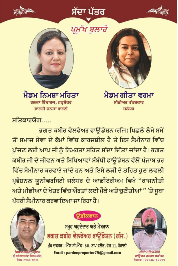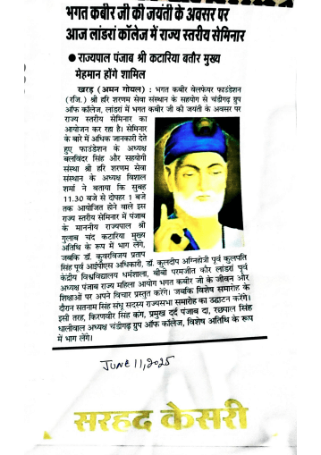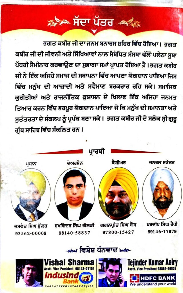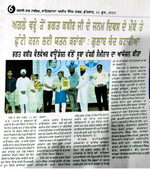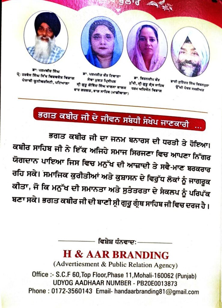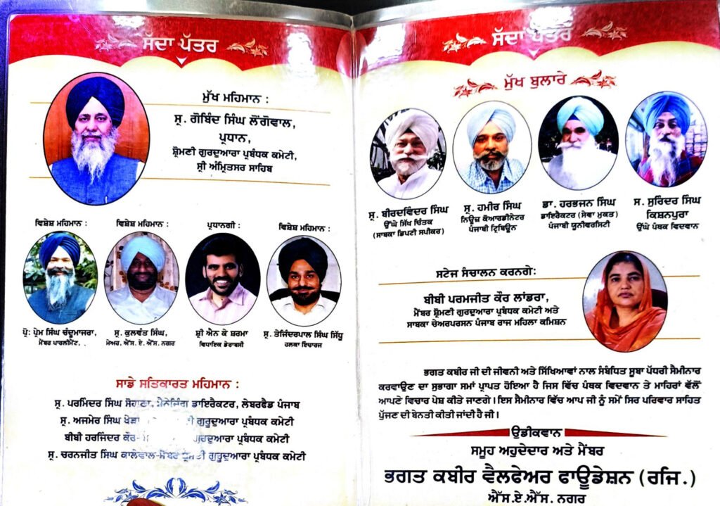 ਭਗਤ ਕਬੀਰ ਜੀ ਦੀ ਜੀਵਨੀ ਅਤੇ ਸਿੱਖਿਆਵਾਂ ਸੰਬੰਧੀ ਸੂਬਾ ਪੱਧਰੀ ਸੈਮੀਨਾਰ